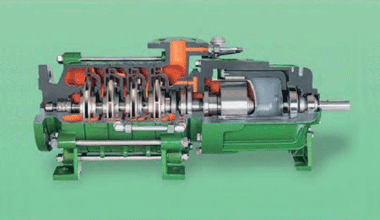 Máy bơm ly tâm đa tầng loại HZSMA có giai đoạn xử lý khí ở phía xả và khớp nối từ kín.